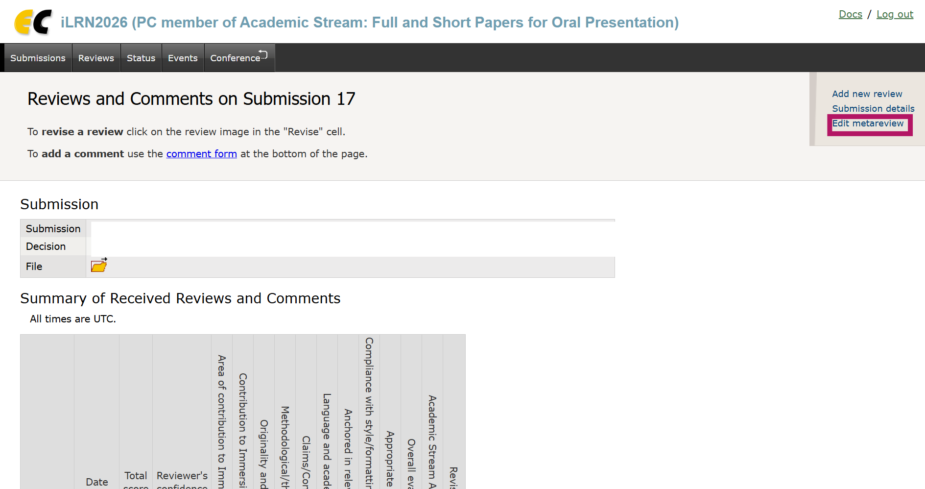 When you are on the review overview page of an individual paper, you can then see the reviews that have been created for that paper. You can only access this page if you have created a review for that paper yourself.