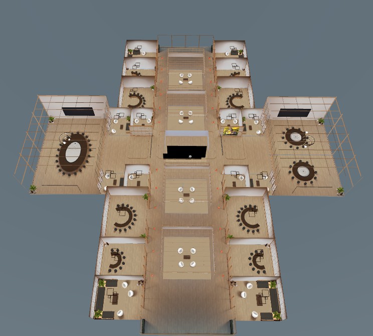 The current House 2 frame includes a gallery with multiple breakout rooms and conference rooms for larger presentations or events (shown above). As of January 29, 2026, it has not been decorated or assigned to host regular activities.