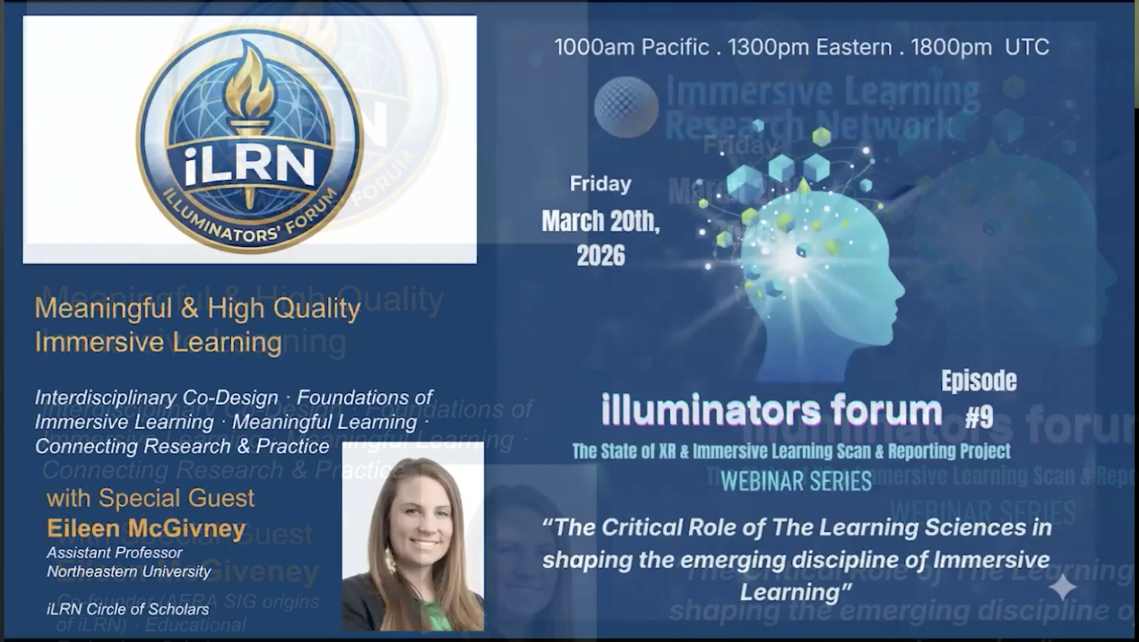 9. iLRN Illuminators’ Forum — episode #9: The Role of The Learning Sciences in the Immersive Learning community (March 20th, 2026) – with Eileen McGivney